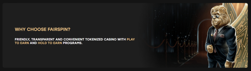 - Play to Earn: Tämä on Fairspinin vallankumouksellinen konsepti. Vastaanotat välittömän rakebackin TFS-tokeneina jokaisesta asettamastasi panoksesta, voitat tai häviät. Tämä tarkoittaa, että pelaaminen kerryttää sinulle jatkuvasti pääomaa.